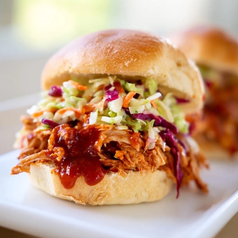 Save to Pinterest The smell of barbecue sauce hitting a hot pan can turn any Tuesday into something worth celebrating. I stumbled onto these sliders during a last-minute cookout when I had more mouths to feed than burgers to grill. Shredding chicken into tangy sauce and piling it onto soft buns with crunchy slaw felt like cheating, but everyone went back for seconds. Now they show up at every gathering, requested by name. Sometimes the best recipes are born from happy accidents and hungry friends.