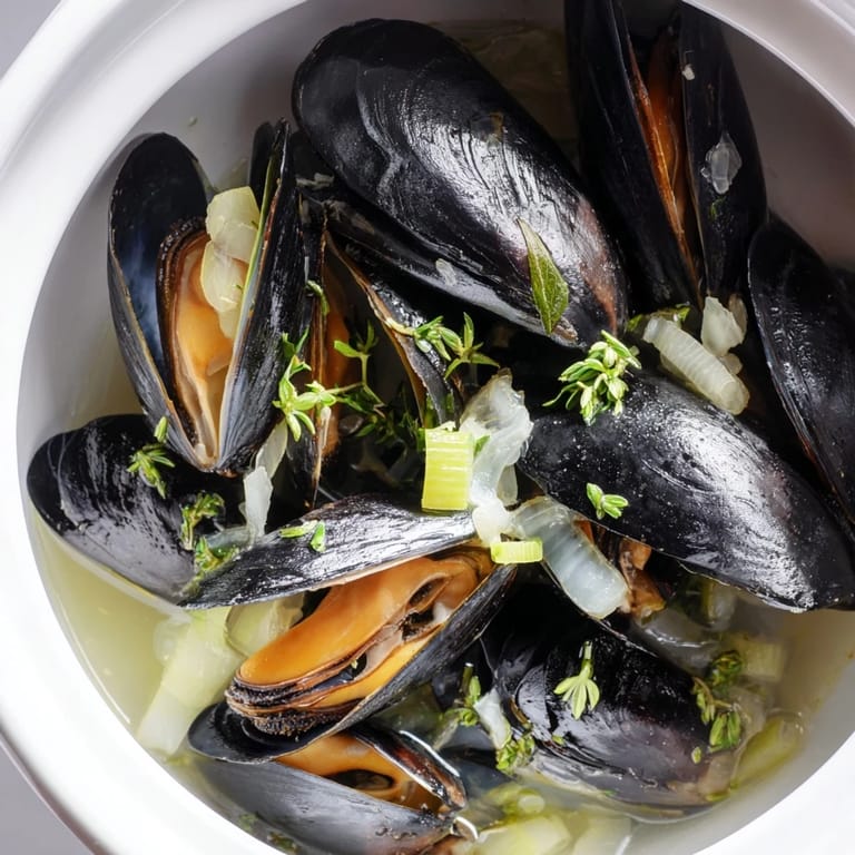 Save to Pinterest There's something almost magical about the sound of mussels opening in a pot—that gentle clinking and hissing that tells you everything is working. I first fell in love with moules marinière on a grey Brussels afternoon, sitting at a small bistro near the Grand Place, watching the chef work with such ease and confidence. What struck me wasn't just the briny sweetness of the mussels or the silky wine sauce, but how something so elegantly simple could feel like a celebration on a plate.