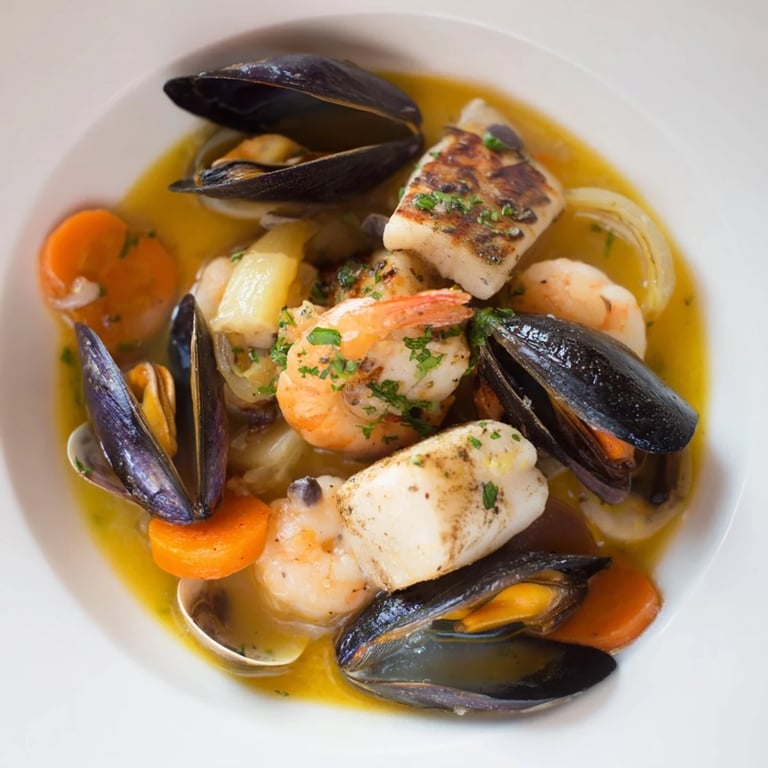 Bouillabaisse rewards patience over speed. The vegetables need those 25 minutes to break down and sweeten. The straining can't be rushed or you'll muddy the broth. The seafood cooking is a ballet of timing—watch it like you mean it, because 30 seconds makes the difference between tender and tough. I've learned that having everything prepped and ready before you start cooking makes the final steps feel calm instead of chaotic. The day you nail the timing is the day you stop following the recipe and start cooking it by instinct.