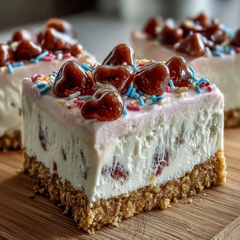 One winter I swapped the graham crackers for crushed chocolate cookies and used red velvet food coloring in the frosting, and it tasted like a Valentine's dream. You can fold in a few tablespoons of cocoa powder to the filling for a subtle chocolate cheesecake vibe, or add a teaspoon of almond extract if you want something a little more grown up. My friend once topped hers with fresh strawberries instead of candy hearts, and it was just as stunning, proof that this recipe is a blank canvas for whatever mood you're in.