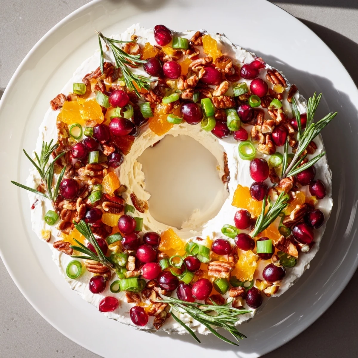 Save to Pinterest A festive and vibrant appetizer featuring tangy cranberries, creamy feta, and herbs, shaped into a beautiful holiday wreath perfect for entertaining.