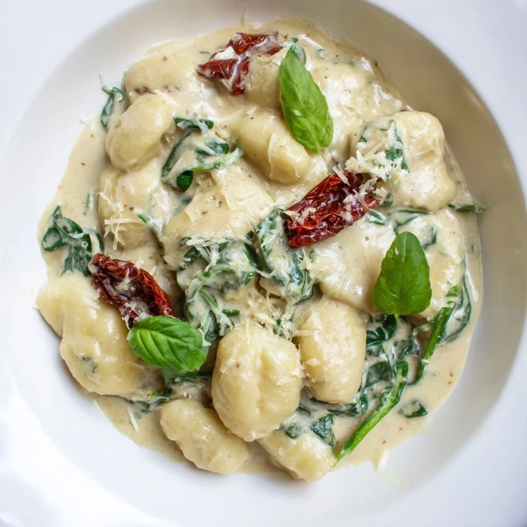 Save to Pinterest There's a quiet moment in every cook's life when they discover a dish that feels like it was invented just for them. For me, that moment came on a cold February evening when I opened a half-empty jar of sun-dried tomatoes and wondered what I could do with them before they went bad. I started with butter and garlic, then cream, and suddenly the kitchen smelled like an Italian countryside I'd only read about. By the time I stirred in pillowy gnocchi and fresh spinach, I knew I'd stumbled onto something special—a recipe that would become my go-to when I needed comfort without complication.