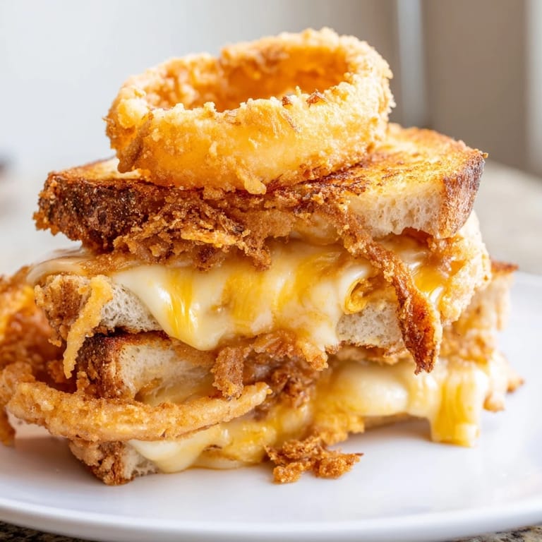 Save to Pinterest The smell of frying onions always stops me in my tracks, no matter what I am doing in the kitchen. I stumbled onto this idea one rainy afternoon when I was craving something more than the usual grilled cheese but did not want to make an entire production out of dinner. Those first crispy onions hit the hot oil and suddenly my whole apartment smelled like a state fair.