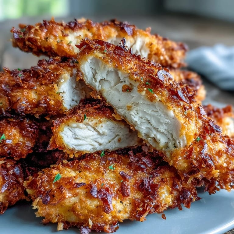 Save to Pinterest The secret to these tenders' irresistible crunch is the panko breadcrumb coating, which creates a lighter, airier crust than traditional breadcrumbs. Combined with the tangy, herby notes from the ranch seasoning, each bite delivers satisfying texture and flavor. The wire rack baking method ensures even heat circulation, giving you that coveted golden-brown exterior while keeping the chicken perfectly moist inside.