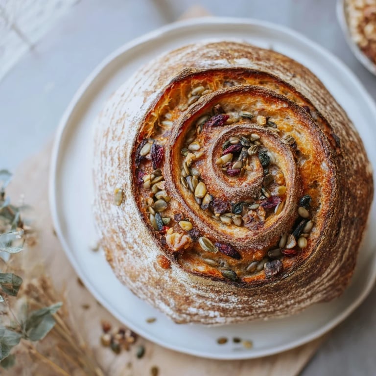The Fibonacci sequence appears everywhere in nature—in nautilus shells, sunflower seeds, pinecones—and there's something deeply satisfying about following that mathematical logic while baking. But here's what makes it work practically: each spiral segment, with its increasing amount of additions and denser ingredients, bakes at slightly different rates. The smaller, seed-studded center crisps up beautifully while the larger outer segments stay tender. The visual drama is real, but so is the flavor architecture—you're not just showing off; you're creating a bread that's genuinely more interesting to eat than a uniform loaf.