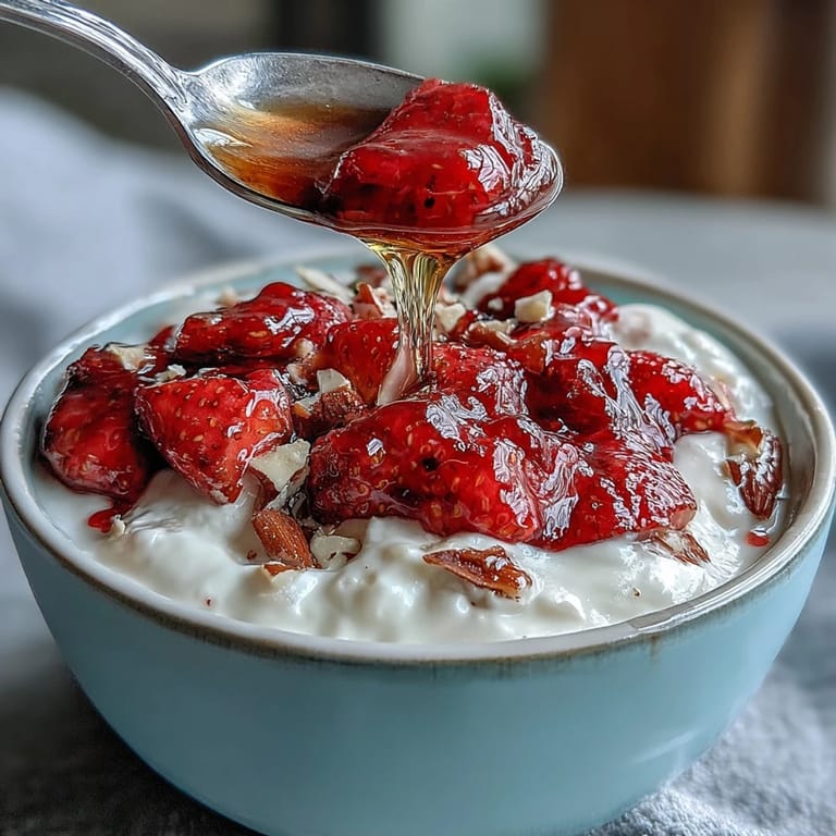 Save to Pinterest Embrace the joy of simple, fresh flavors enhanced by thoughtful preparation. The warm strawberry compote bursting with juice complements the cool, rich yogurt perfectly, while the nuts add an exciting crunch. Whether you enjoy it chilled or slightly warm, this bowl is a refreshing treat that fits effortlessly into any routine.