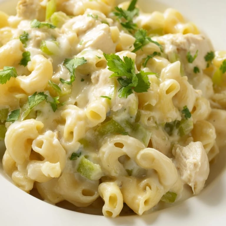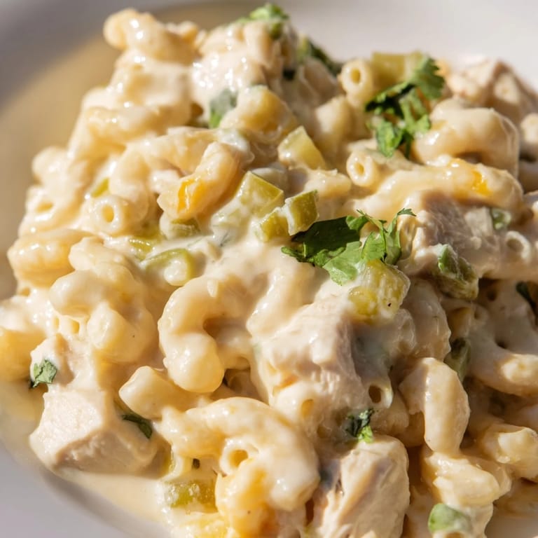Save to Pinterest There is something profoundly satisfying about turning humble ingredients into a meal that makes people close their eyes and sigh happily. This green chili chicken mac started as a pantry cleanout experiment and became one of those recipes I keep coming back to, season after season.
