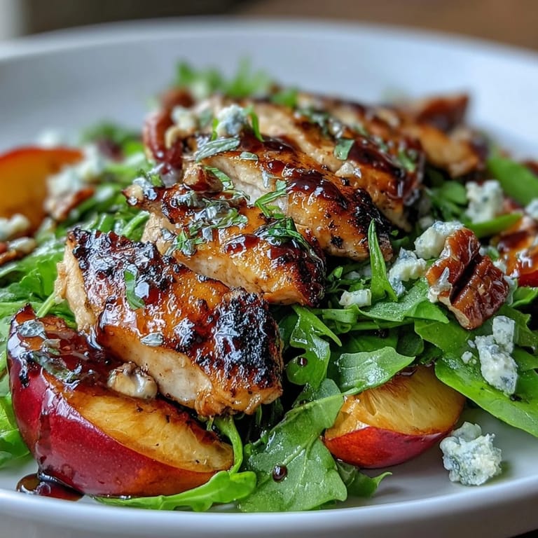 Save to Pinterest There's something about summer that makes you want to throw everything beautiful onto a plate and call it dinner. My neighbor handed me a basket of peaches one July morning, still warm from her tree, and I stood there holding them like I'd won something. That afternoon, I grilled chicken for the first time in months, and while the grill marks were still sizzling, I grabbed those peaches and did the same thing. The combination of char, sweetness, and that peppery arugula bite felt like a small discovery, even though it was probably the simplest thing I'd made all week.