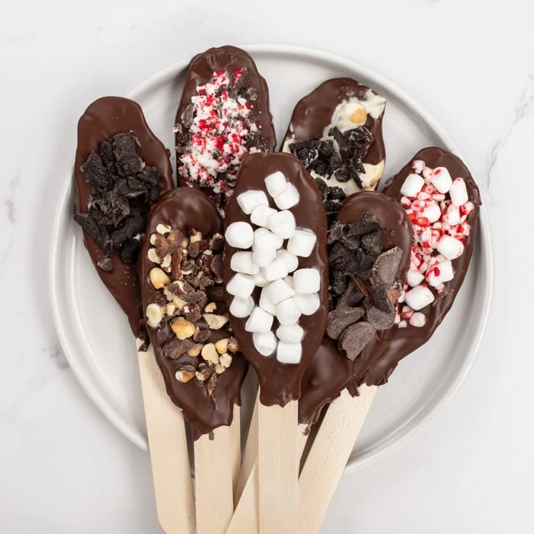 Save to Pinterest Gather your loved ones around a beautiful board filled with chocolate-dipped spoons and a colorful spread of toppings. The ritual of stirring a hot chocolate spoon into warm milk, watching the chocolate melt and the toppings swirl, makes this dessert memorable and heartwarming.