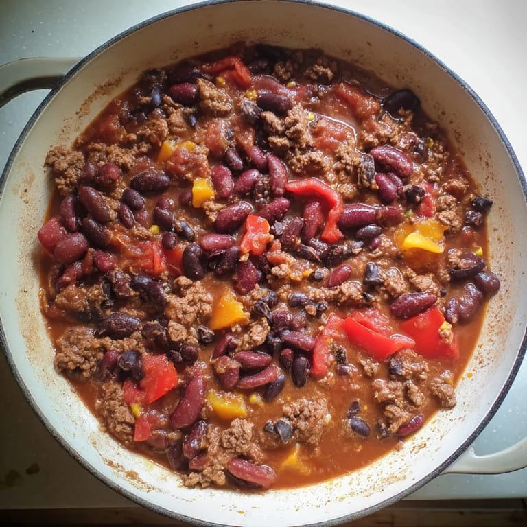 Save to Pinterest A rich, warming chili featuring ground beef, beans, tomatoes, and a touch of cocoa and cocoa nibs for deep, comforting flavor—perfect for a cozy night in.