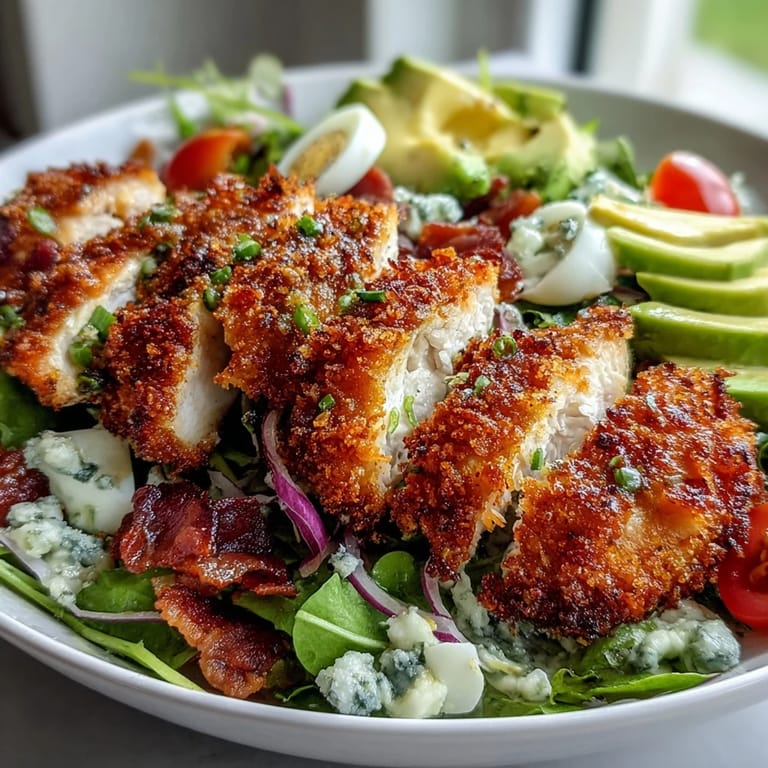 Save to Pinterest There's something about assembling a Cobb salad that makes you feel like you're building something special, even if you're just throwing together leftovers on a Tuesday night. The first time I crowned one with a crispy Parmesan chicken thigh instead of plain grilled chicken, everything shifted—suddenly this salad went from weeknight filler to the thing everyone actually wanted to eat. The crunch, the way that golden crust catches the light, the blue cheese getting tangy against the warm chicken... it became the salad I make when I want to impress without spending all day in the kitchen.