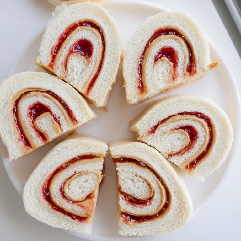 Save to Pinterest This recipe embraces the joy of simple ingredients coming together in a creative way. By flattening the bread, spreading creamy peanut butter and your favorite jam, then rolling and slicing into pinwheels, each bite bursts with nostalgic flavors presented as a fun finger food.