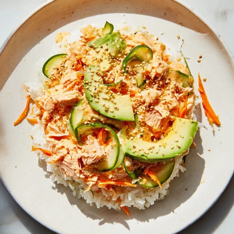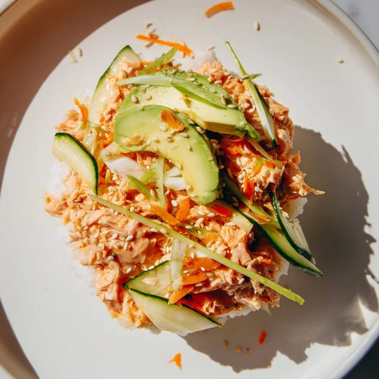 Save to Pinterest One rainy Tuesday, I found myself staring at a pantry full of canned goods and a serious craving for something spicy. This salmon rice bowl started as a desperate experiment but quickly became my go-to when I want big flavors in minimal time.
