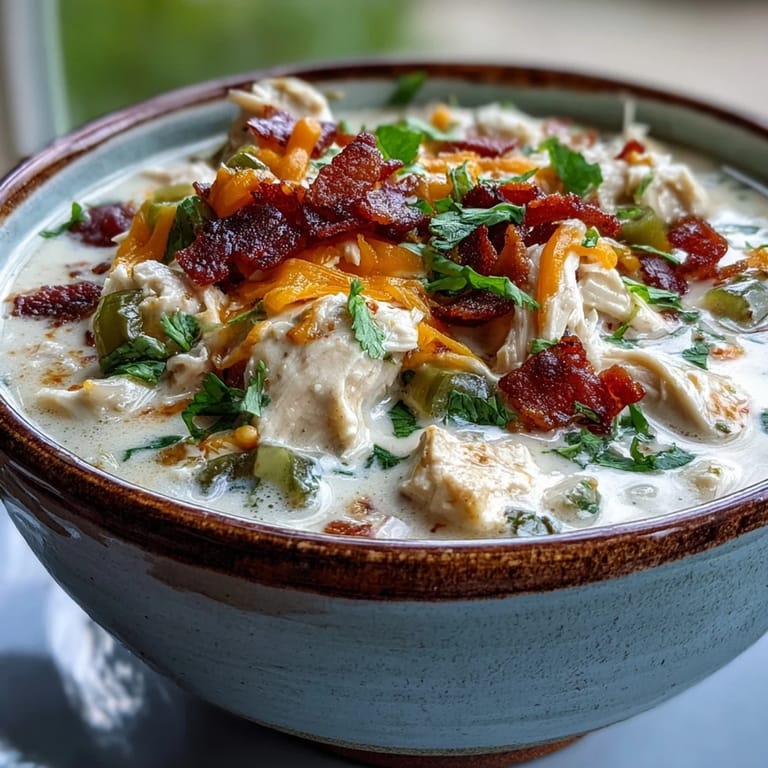 - Simmer for 5 more minutes to let flavors meld, then ladle into bowls and garnish with crumbled bacon and fresh cilantro.