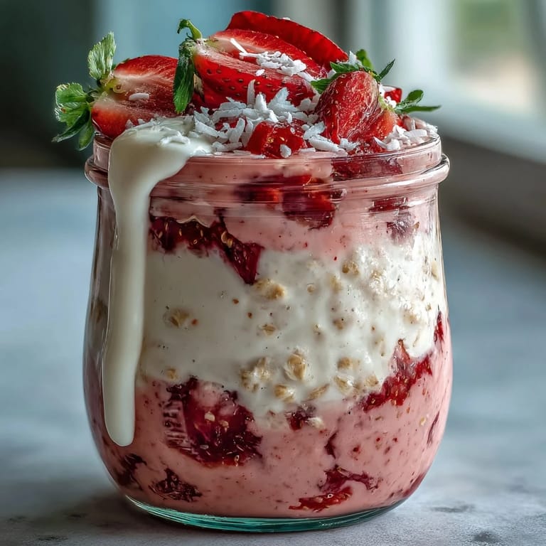 Save to Pinterest There's something about preparing breakfast the night before that feels like giving yourself a gift. One Thursday evening, I was rushing around the kitchen when I grabbed a can of coconut milk on impulse, thinking it might add something unexpected to my usual oatmeal routine. By morning, those oats had transformed into this silky, almost luxurious bowl that tasted like spring had decided to visit my breakfast table. The strawberries had softened just enough to bleed their sweetness into everything around them, and I realized I'd stumbled onto something I'd be making again and again.