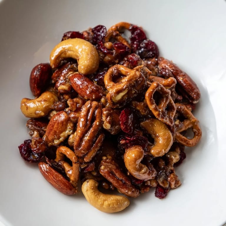 Save to Pinterest A festive, irresistible mix of roasted nuts, crunchy pretzels, dried cranberries, and a hint of sweet spice—perfect for holiday snacking or gifting.