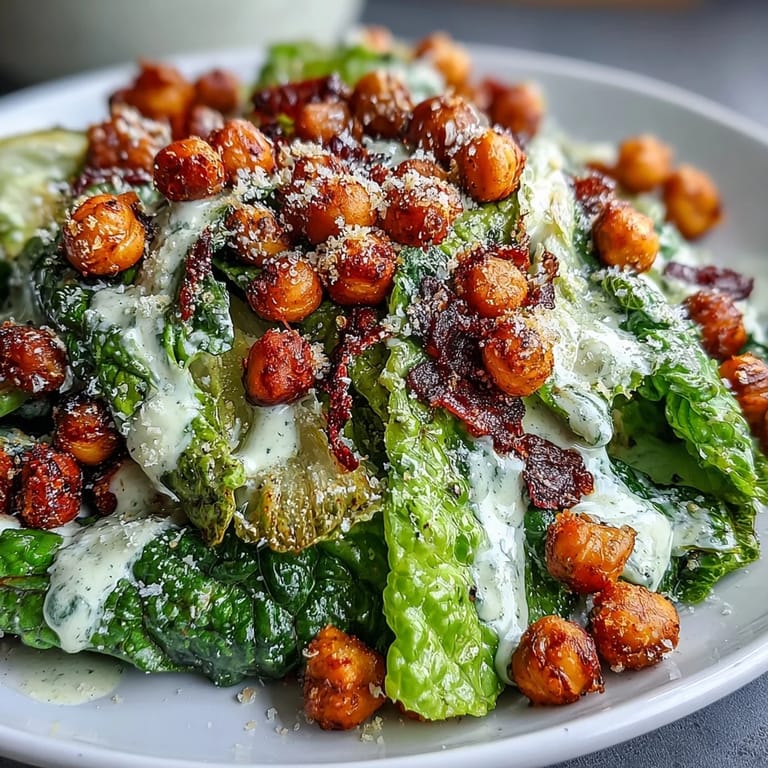 Save to Pinterest There's a moment in every kitchen when you stop apologizing for what you're making and start celebrating it. For me, that clicked while roasting chickpeas on a Tuesday night, watching them turn golden and crispy in the oven while a cashew-based dressing blended into something that tasted like indulgence disguised as health food. I wasn't trying to prove anything to anyone—I was just hungry for a salad that felt substantial, creamy, and exciting all at once. This Caesar became my answer.