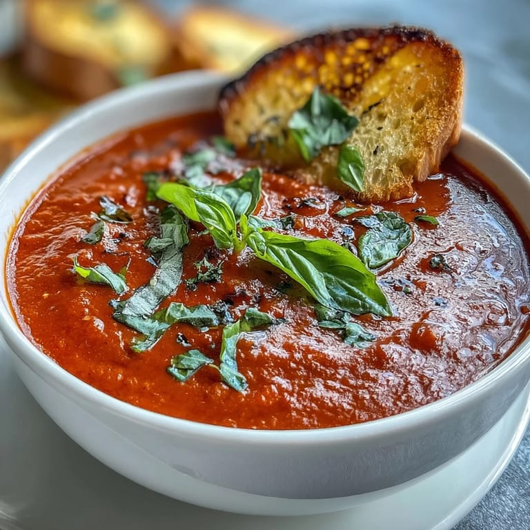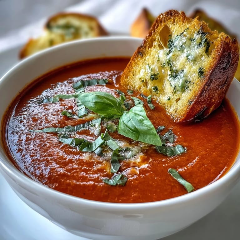 I learned by accident that day-old sourdough actually works better for dippers than fresh bread—it toasts more evenly and doesn't absorb the soup as quickly, so you get that satisfying crisp-to-creamy contrast. The sourness of the bread also plays beautifully against the sweet-acidic balance of the soup, and when you rub warm toast with fresh garlic, something almost sacred happens. That interplay between the bread and soup is why I always make extra dippers and hide a few in the kitchen for myself.