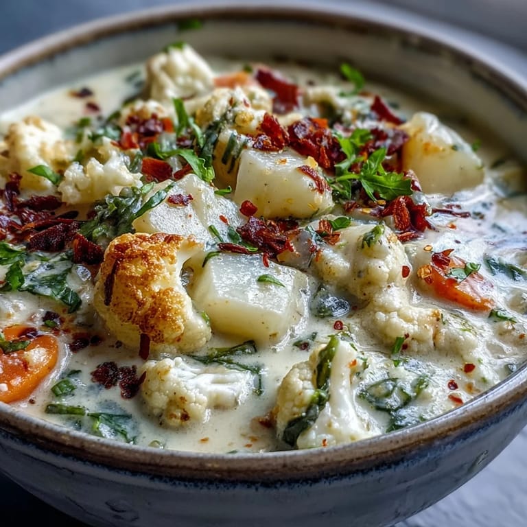 Save to Pinterest I stumbled upon this cauliflower chowder recipe during a particularly cold November when the farmers market had mountains of cauliflower selling for next to nothing. My kitchen windows were fogged from the steam as the vegetables softened in the pot, creating this amazing aroma that mixed with the slight chill coming through the old window frames. What started as a practical solution for surplus produce quickly became my go-to comfort meal that even my vegetable-skeptical brother requests when he visits.